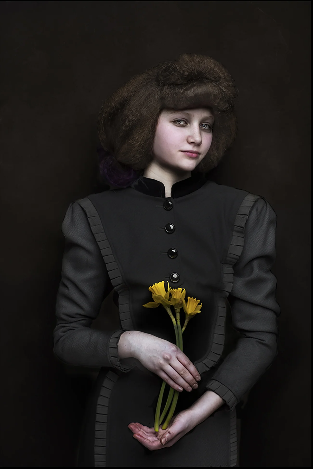 Ruby in Valentino with daffidils